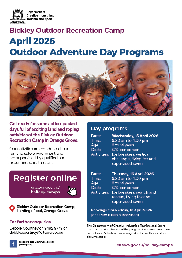 Get ready for some action-packed days full of exciting land and roping activities at the Bickley Outdoor Recreation Camp in Orange Grove.